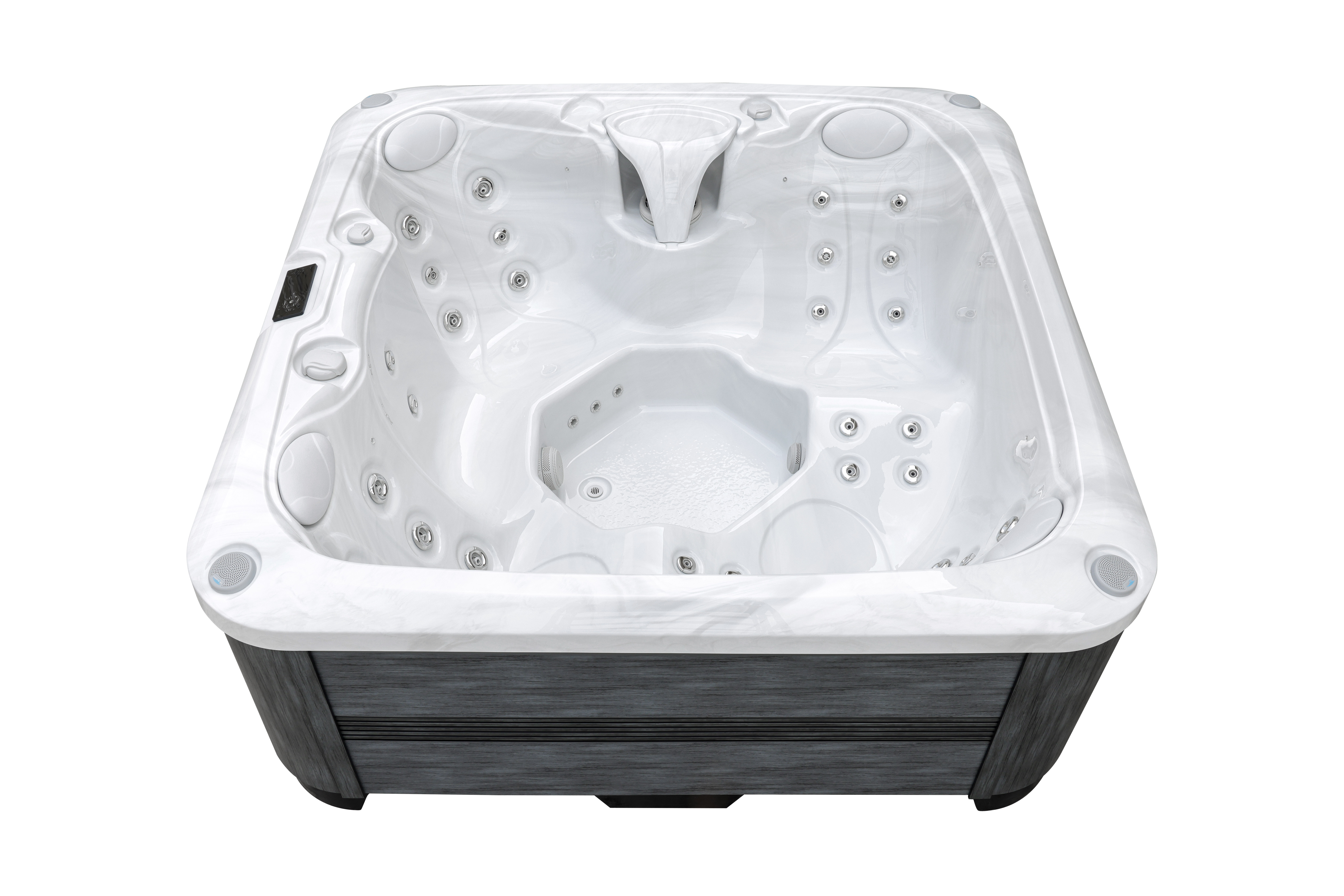 Lodur оснащен 37 воздушно-водяными форсунками, которые обеспечивают targeted массаж ключевых зон и глубокое расслабление мышц. Продуманная эргономика с четырьмя подголовниками создает комфортные условия для отдыха компании до пяти человек.