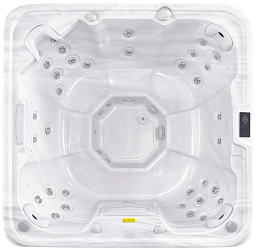 Роскошный плавательный гидромассажный СПА-бассейн с противотоком Joy Spa JY 8601 предусматривает отдельную чашу для гидромассажа, рассчитанную на 4 человека, а также большую чашу для плавания, где дополнительно предусмотрено 2 сидячих гидромассажных места. Общее количество гидромассажных форсунок в бассейне - 59. Они расположены так, чтобы обеспечивать полноценный гидромассаж всего тела каждого пользователя. Помимо сидячих мест в чаше бассейна предусмотрен один лежак, в котором форсунки размещены так, чтобы тщательно массировать спину, ягодицы, икры и стопы.